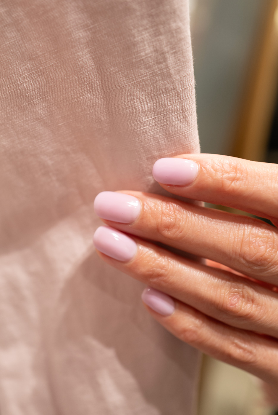 仮硬化させたベースジェルの表面に重ね塗りし、ネイル硬化用ライト(ネイルキュアライト)で約10秒照射して仮硬化させます。トップジェルを塗り、ライトで完全硬化して仕上げてください。