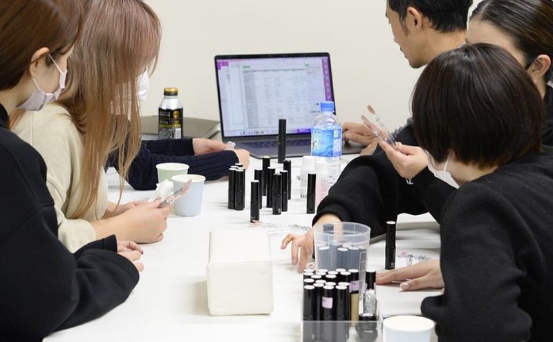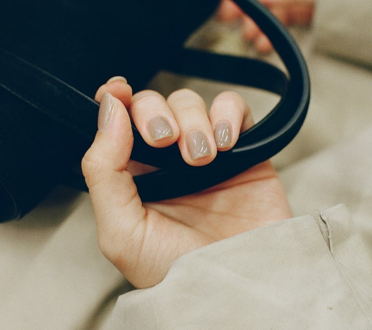 「オフィスネイルはベージュとピンクしかないと思ってたから、ちょっとオレンジっぽい色とかグレーが新鮮。塗りたい色で仕事にいけるのが嬉しい。薄く塗れば発色の強さを調節できるって画期的で、でも家にあるのでは絶対できないしほんとに新しいと思う。」
