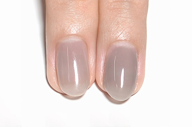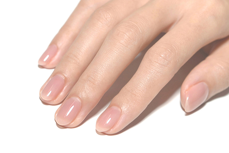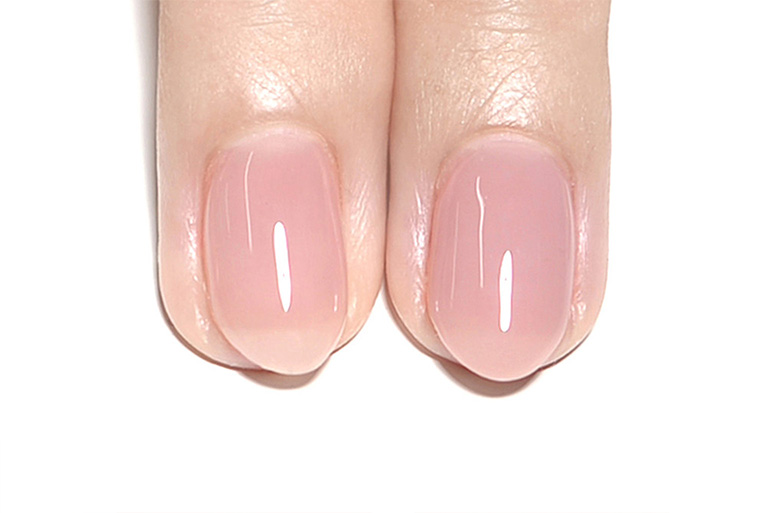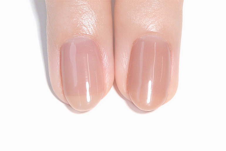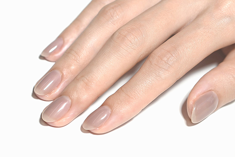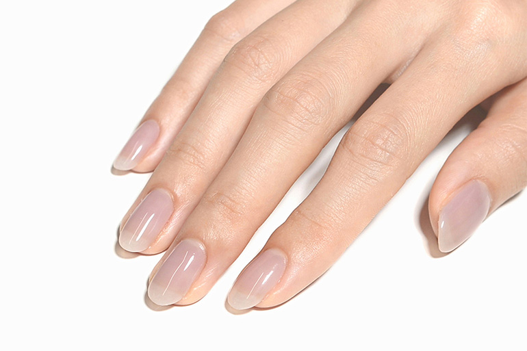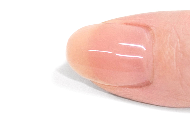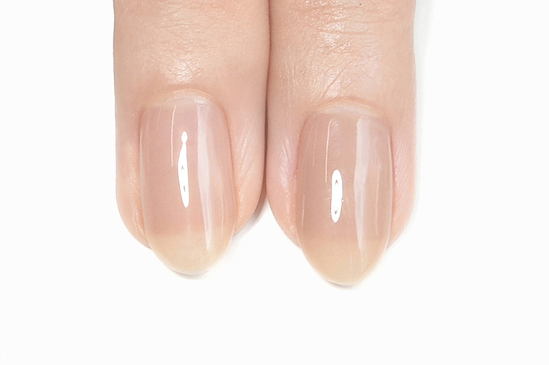 肌なじみ良く透明感ある色味は、色ムラになりにくく、爪の生えぎわやサイドのきわまでうまく塗れなくても、爪が伸びて根本に自爪が現れても、全く目立ちません。